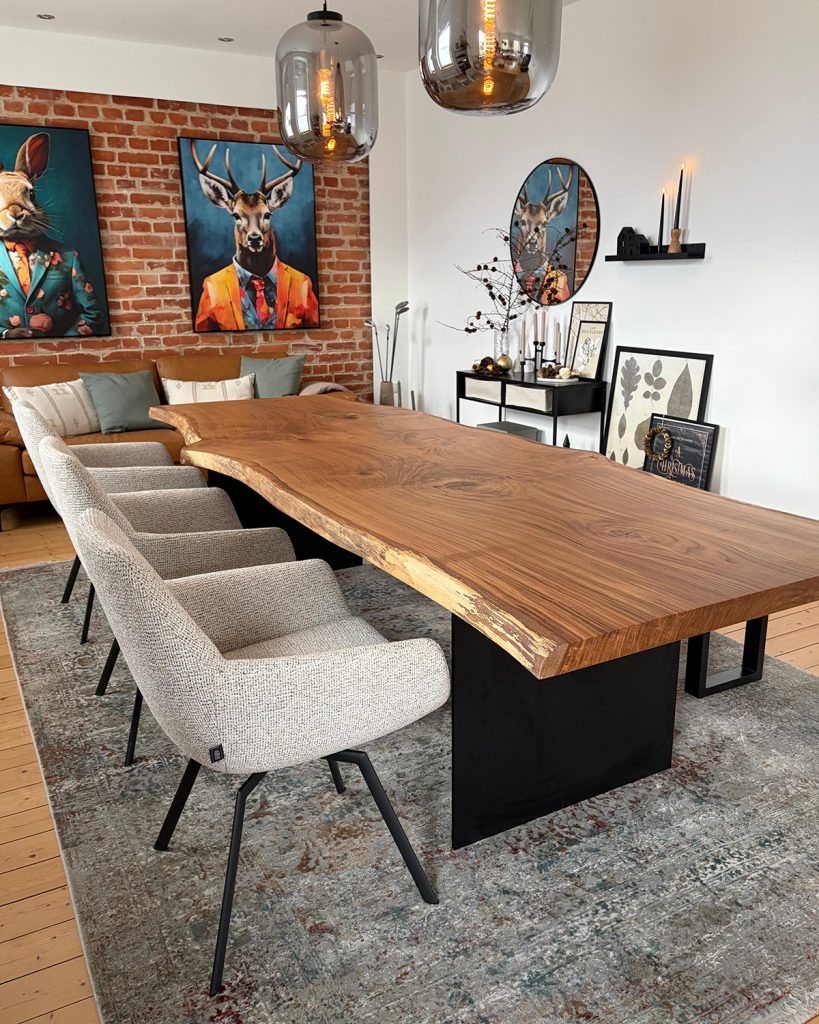 Jeder Tisch ist ein Unikat, das die Geschichte des Baumes weiterträgt und über Generationen hinweg Bestand hat.